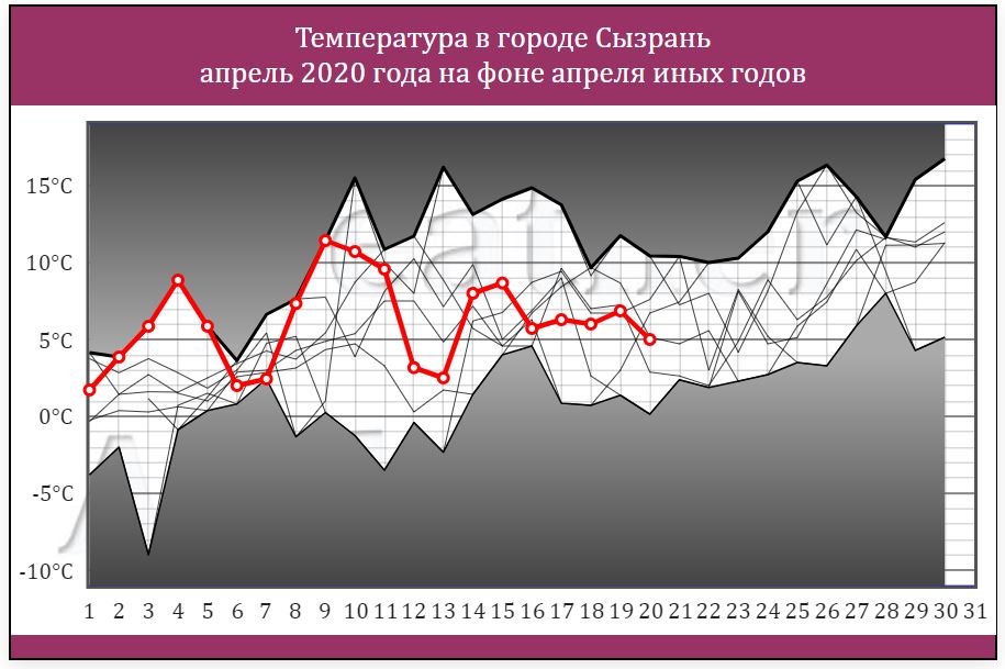 Сызрань - температура в Апреле 2020