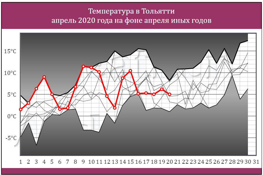 Тольятти - температура в Апреле 2020