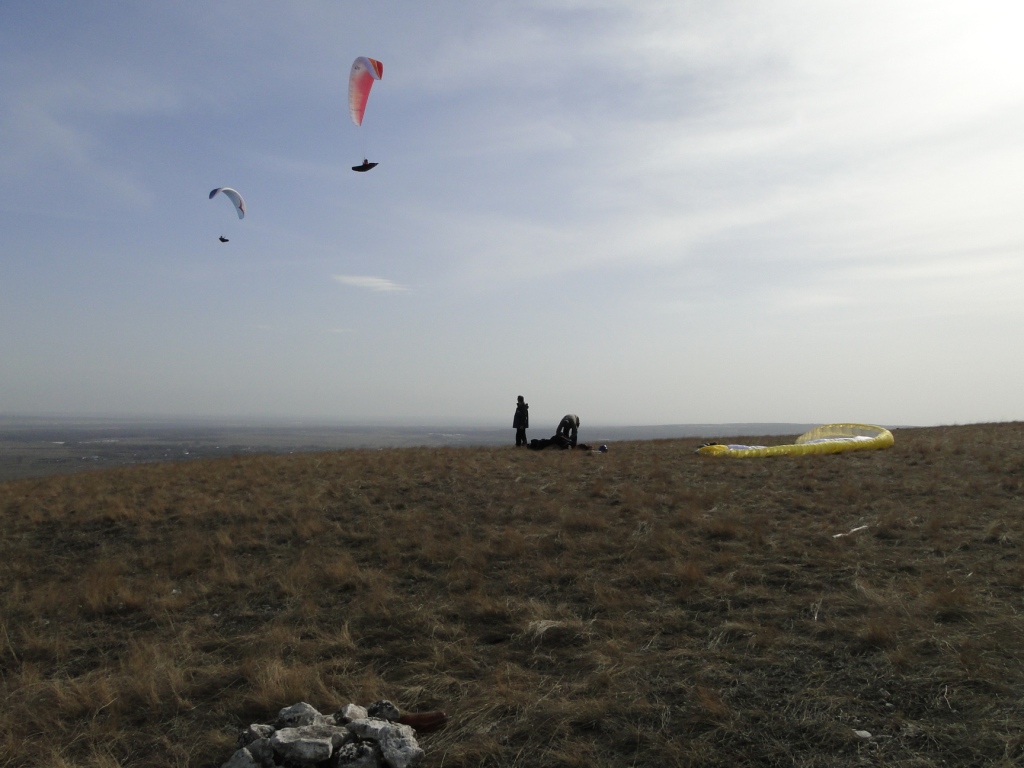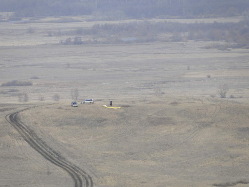 Сезон Раковка 2013 считаю открытым. Двумя Поджериками На саму гору лезть не рискнули. Юрок доехал по северо востоку до первых холмов, внизу очень влажный грунт и поднялся пешочком около 1 км. Расстояние вымерил в прошлом году лебедкой, когда тянулись с северовостока. Вова Рузик попытался пробиться через лоб, сама Кабацкая горка сухая, но примерно через километр грунт как болото. И мы пробились к Юреной машине через северовосток. Пока мы шагали на старт, Юра подлетывал. Но погода расщедрилась и мы зачетно полетали. Находили очень большие но не скоростноподъемные термики. Воздух был ламенарен, колбасни небыло. На крайнем пузыре я выкрутил метров 200 (варика у меня нет) и с приличным запасом перелетел километр от горы к машинам, Юра и Вовка сделали такой же перелет. Класс! Идти обратно по чванине не пришлось. Спасибо всем кто не приехал, за свободное небо.