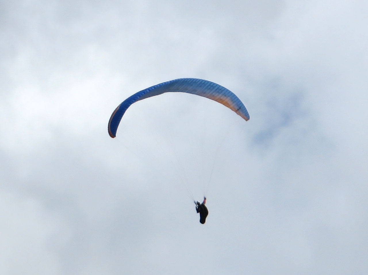 Налетал почти 3 часа. Это перебор. Потоки были мягкими. Один раз крыло слегка сложило, но тут же оно раскрылось не изменив направления движения и без потери высоты. На маршрут не ушел, т.к. сначала ждал в воздухе когда все взлетят, а все взлетели только через 1,5 часа, потом потоки стали не такие мощные, а облака стали выглядеть зловеще, короче я зассал. Садился у подножия по ветру с дымком.Помните, в Морквашах даже при северо- западном ветре у подножия дует восток. Может завтра что получится? Только стартовать надо уже часов в 11.